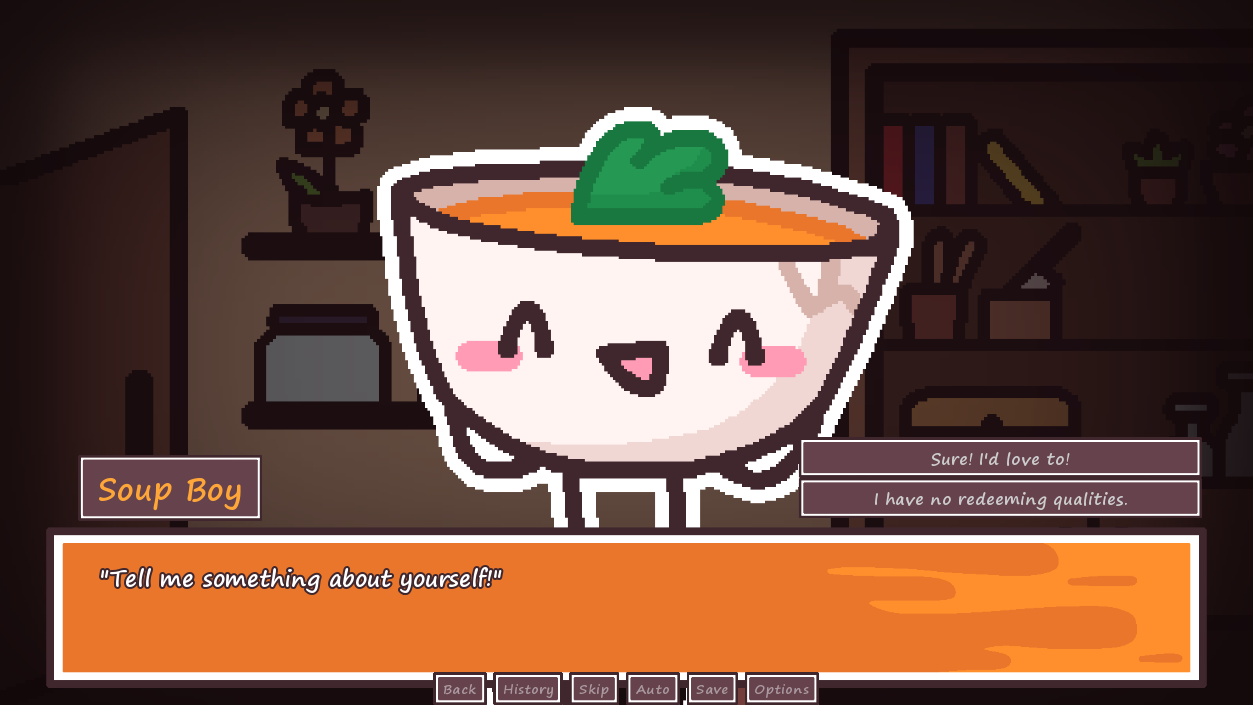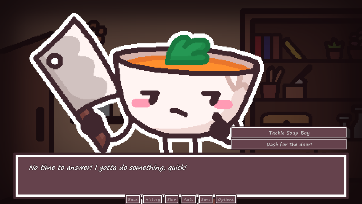 Get kidnapped by a sentient bowl of soup and attempt to escape from it in this wacky visual novel with... quite a lot more than 1 ending! Or... don't?
